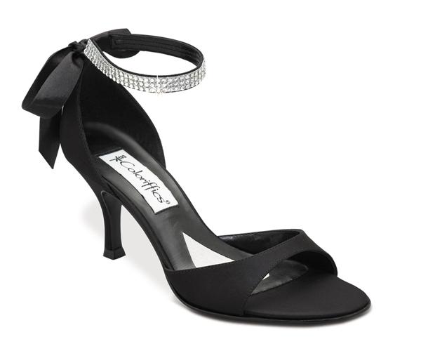 You're Sure to Showcase your Style in this Sexy and Sophisticated Black Satin Sandal with Dazzling Rhinestone Anklet and Ribbon Tie