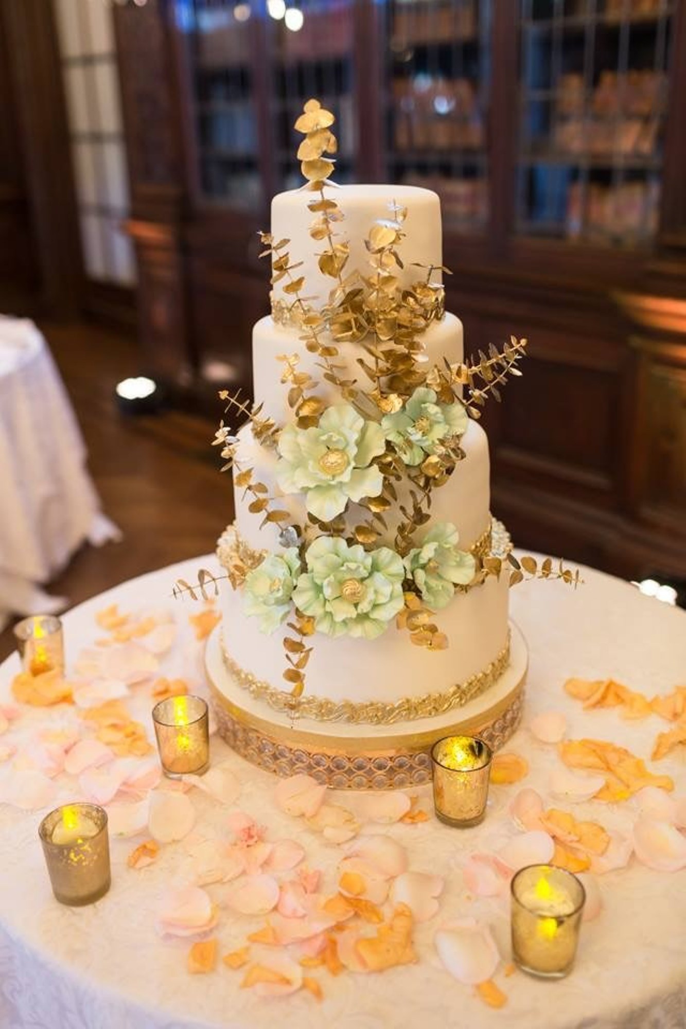 Wedding Cake - Mint green flowers and golden eucalyptus by Natalya