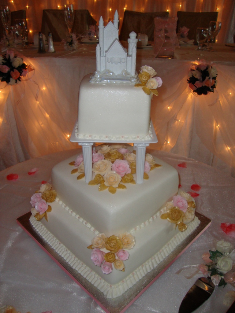 "Barbara" wedding cake done in soft pink, gold and ivory colours.