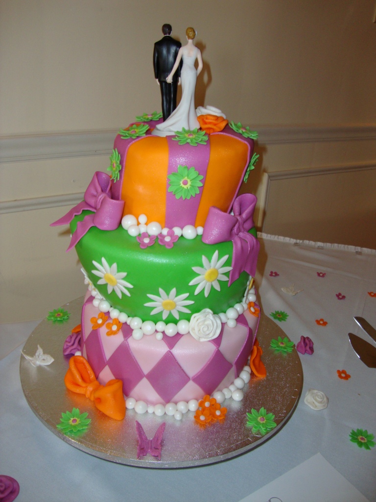 This fun and very colourful wedding cake "Christy" was created for a lovely couple whose wedding was nothing but a celebration of love, happiness and fun.