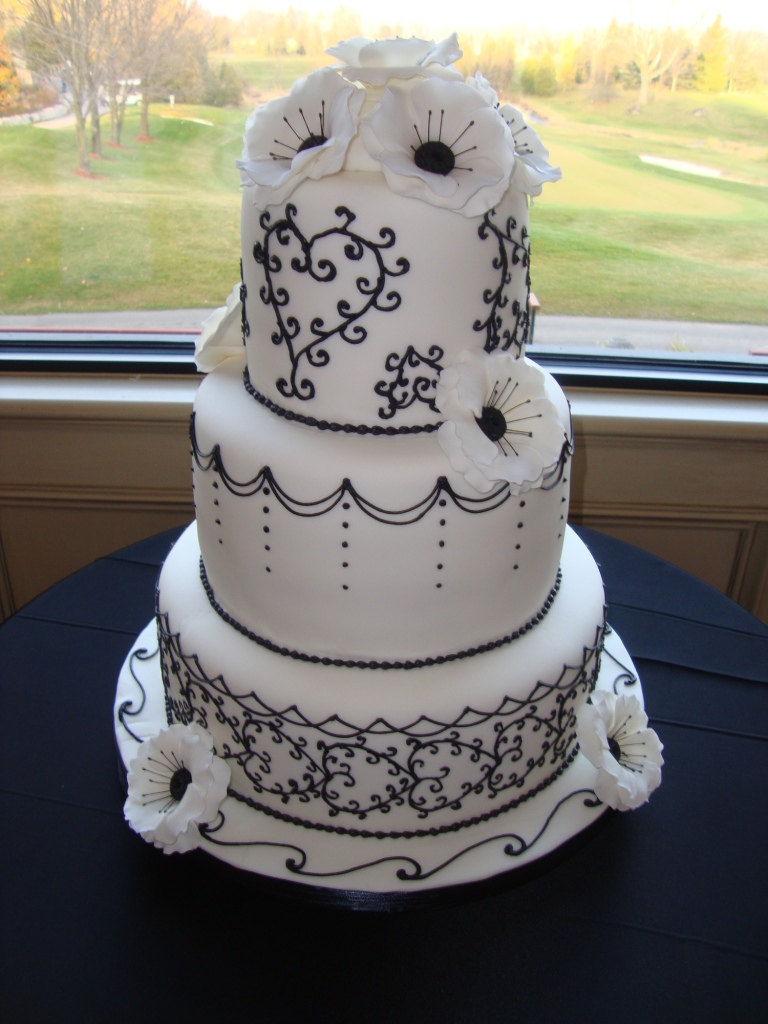 This beautiful cake "Jacqueline" was designed to match a black and white wedding theme. Gum paste flowers added that special touch to complete the elegant look.