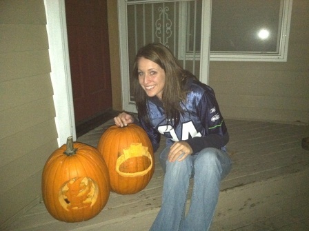 I finally agree to come downstairs and the table was all set up; Pumpkins strategically places, newspaper down, carving tools ready and as always, I get my camera out the document the moment. I asked him about the funny faces he was making and he claimed, "It was just coming to him", wiping sweat off his brow, making surprised adorable faces - it was out of character for him. If only I had known! About 10 minutes in, I'm cutting the top off my pumpkin making fun of his for looking SO messy and my KNIFE BREAKS!! How does this happen? We get me a new knife and away I go, pull the top off and bam! Inside is a tiny plastic bag with a perfect diamond ring in it, after the confusion faded, I looked over to see Greger on his knee and the words that flowed perfectly out of his mouth then seemed like a blur; now ring through my head as a constant reminder that I will forever be happy, in love, and have my best friend by my side until death do us part. ....and they lived happily ever after. |