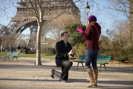 After I said an airport-goodbye to Kyle, my boyfriend of two years, I boarded my flight to France in January 2012, eager to reunite with my BFF, Kelsey, who moved to Paris last year. Together we filled the first five days of my 7-day Parisian adventure with unimaginable fun, then on the second to last day of my visit, Kelsey and two friends casually suggested we stroll over to the Eiffel Tower. We had beyond perfect weather that day, so I sauntered slowly while gazing toward the top of the monument.