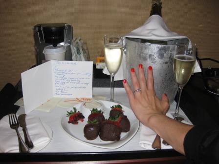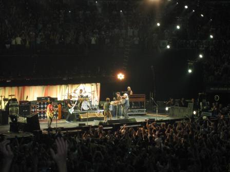 And so, as fate would have it, our relationship began. As two self-proclaimed "young-at-heart" souls, marriage wasn't often a topic of conversation for us. I didn't have grandiose ideas of my perfect proposal, let alone my wedding day. When I look back on it now though, and on all of the over-the-top creative and romantic things he's done for me over the years, I should've known this proposal would be one for the books. We had purchased tickets to see our all time favourite band, Pearl Jam, at the Air Canada Centre. Nothing leading up to the concert led me to suspect in any way that he was up to something. We met friends before the show, and Aaron was as cool, calm and collected as he always is. The house lights dimmed and the show began. Cold beers in hand and my best friend at my side, it was already the perfect night ... I had no idea. About half way through the show they played my favourite song, "Elderly woman behind the counter of a small town." With the momentum of the crowd, I raised up my arms and began to sing my heart out. As I turned to Aaron to cheers him, there he was, among a crowd of thousands of people, down on one knee with his index finger extended, and on the tip of it was the ring! As he yelled over the crowd, "Marry me, Aut?" I remember my heart felt like it was going to pound out of my chest. As I yelled back "Yes! - Get up! Get up!" I remember all of the people in the seats around - perfect strangers - cheering for us! There were many high-fives as they shared in our moment. It was one of the most surreal experiences in my life, and I recall thinking "If my life were a movie it would have one stellar soundtrack". As if that weren't enough, just as the house lights were about to come on, Pearl Jam played their encore "Keep on rockin' in the free world," and the very man himself, Neil Young, walked up on stage and joined them in the finale. I couldn't help but think the stars were aligned for us that night. |