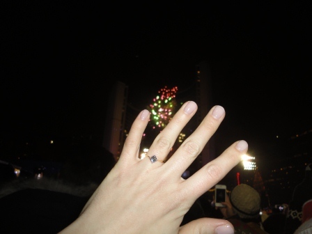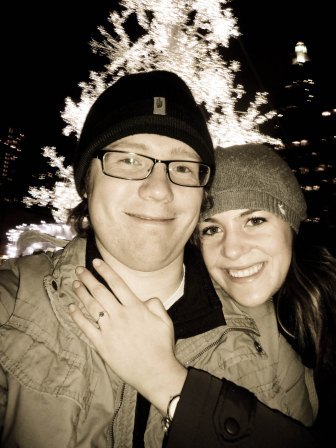 My fiancé and I have been dating each other for about 6 years, we met at the University of Guelph first year and have been together ever since. Matt and I had talked about getting married but it was never serious until this past December 2012. Matt asked me if I would go engagement ring shopping with him so I was very excited. After trying on rings and deciding on ones we liked or disliked, Matt assured me that an engagement was out of the question right now because of us both being in school (for our second round of post-secondary education). The engagement: I was trying to figure out some plans with friends for New Years Eve and kept asking Matt's opinion about which we should go to. Matt kept brushing it off and said, "we should do something just us." Matt and I had gone to Nathan Phillips the previous year (2011) to watch the fireworks at midnight so I hesitantly agreed after turning down my friend's plans. Matt told me to be ready by noon on New Years Eve. He picked me up that day and took me out to see a movie, afterwards he took me out to a nice dinner. At dinner he was acting strangely, overly-smiley and complementing, but I brushed it off as being for the excitement of the ball dropping. We left the restaurant and made our way to Downtown Toronto. We would arrive a bit early so we both decided that we would walk around, grab a coffee and enjoy the nice weather. We walked around for about 2 hours when we arrived in front of the Parliament buildings. It was all dressed up in lights for Christmas and it had just started snowing. Matt got down on his knee and my heart started racing. Little did I know, he was getting down to tie his shoe. We both had a laugh at that moment and continued on our walk. We had looped around Toronto making our way back to my favourite Christmas tree. We had gone here the year before and there was something magical about how the tree lit up amongst the snow. Matt suggested we sit down and take some pictures of the tree, and I agreed. We sat there taking some snapshots and we realised we were completely alone at this tree in this big over-populated city. Matt scooted closer beside me. He started unzipping his jacket and unzipped a small pocked on the sweater he was wearing. At that moment, I knew what was happening. He explained why he had been anxious all night because he had been wanting to do something for 6 years now. He got down on one knee in front of me - I can't honestly remember everything he said in the shock of the moment- but he told me he loved me and wanted to be with me forever- that he couldn't picture his life without me and asked me to be his wife. I immediately started crying in excitement and completely forgot to give him my answer. He had to ask me again and I said yes! I called my friends and family right after it happened, as tears were still streaming down my face, (most of them thought I had been in an accident). I told them about the proposal and that we are getting married and they were all so excited for us!! After I said yes, Matt decided to celebrate in his own special way, he made his way to a street vendor and got a hot-dog and fries. We made our way to Nathan Phillips and rang in the New Year as a Newly Engaged couple. It was an amazing night that I will never forget. |