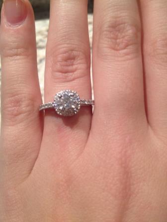 For our birthday this past December, Jason gave me a gift card for the mall to replenish the items that our dog had eaten up to that point. I was so excited and I wanted to use the card right away. I decided to go shopping the next day. On December 18th, 2012, I came home after making a stop at the mall. Everything seemed normal, Jason greeted me in the kitchen and gave me a kiss. He then went upstairs and shouted down to me "It's a good thing you bought more clothes to replace what the dog ate. He ate something else of yours!" I immediately was fuming mad and stormed upstairs. I flew into our bedroom, only to find our dog sitting on the bed, paws apart and the ring box was between his paws. Jason was standing beside him. I could not believe it. I said "OMG! What is that?! Can I open it?!" He said, "No, can I?". He then asked me to marry him! Of course I immediately said yes. From the moment we started dating, I knew he was the one for me. |