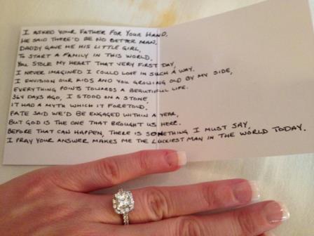 However, my supervisor ended up calling me in the office about 20 minutes later saying she received a forward pricing audit that needed to get done and she suggested it be good experience for me to take that class. So after that I really had no choice. So I was stuck taking this class with my dad and there was no way out. I was so close to switching to a class two weeks later with an opening but I could see my dad really wanted me to join him, esp since we had to fly out on Easter. So that's when I met Mark! The first day down at breakfast n the hotel lobby I seen him and something just felt weird. I never believed in love at first sight but that's what it felt like. Oh and I forgot to mention, I had just got out of a 9 year relationship (was never engaged or anything). We started dated when we were 16 and just really grew apart and changed a lot. So the last thing I wanted was a relationship. I was ready to enjoy the single life for once. From the hotel the whole class would take a bus to the institute each morning (about a 15 min ride). Everyone in the class was from all over the US (LA, TX, FL, ect...). Mark sat right in front of me and we just clicked so well and would talk like we've known each other for years. He was also getting out of a long relationship. That week I learned a lot about him and also found out the strangest thing! He was also in the class as a replacement for someone who dropped out. Everyone else in that class was enrolled except Mark and I. Another funny thing was that everyone in the class could see our connection and we weren't even making it noticeable. My instructor of the class even kept saying it to us two. Meanwhile my dad was in this class but also got along with Mark so well (see class picture looks like my dad Harry is watching over Mark..haha ). Everything just felt so weird but so right. After that week we would meet up every weekend either in Philly or Northern NJ and go on dates ( hiking, baseball hall of fame (a Phillies and Yankees fan) and fun things like that. Throughout the year we became so close and our job allowed us to spend long weekends together (both working 10 hour days). Two weeks ago we signed a contract for a house (Mark is transferring down my way!!) and got engaged Saturday. But pleases see the pictures for the engagement story. He got down on one knee and everything! Please let me know how you like the story. I'll never forget it! |