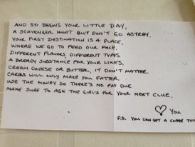 Shannon and Mark - Anniversary Scavenger hunt that turned into a proposal