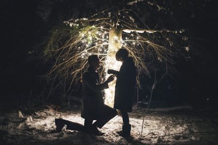 In the dim light, I made out the figures of two people standing on the path ahead. As I walked closer I realized I knew them, my dear friends Nova and Nathan. I walked closer to them and they began to single me out, they had chosen the word "wild" to describe me and this word was cast in shadows upon the tree behind them. They spoke to me of lovely things, about our friendship and about things they saw God doing in me. They prayed for me and I walked on, down the path, enchanted by the forest. At the next stop, Paige and Christine spoke to me, the word "unique" cast upon the tree behind them. As I traveled on down the path, they stayed behind. Next was Hannah with a note from my lovely LeeAnna, the word "admirable" appeared on a tree there. And still, I walked on. Just my Jacki, my lifetime best friend, and I left. As we followed the candles, the sound of Old Pine danced upon our ears. Jacki stopped me before we turned a corner. She read me notes from my loved ones which brought me to tears: Jayme and my brother, James. This tree said "in my heart", a quote from my brother's letter to me, which naturally brought me to tears. Last, Jacki spoke to me softly about the lives we had shared together and about Christ, He who we had found together and who had kept us walking together all these years. We walked further, our feet crunching in the snow. There was Andrew, underneath a tree that was lit up by fairy lights. Jacki hugged me, and she let me go. I walked to Andrew, alone now. We stood under the tree. He began to speak to me about God and about our relationship. He spoke of our future and of our mission to glorify God-and how he wanted to live his life with me, doing radical things for the Kingdom of God. He got down on one knee and opened a small box. Inside was a small wooden fox that he had carved. On it, it said "marry me?" Foxes have always been one of Andrew's favorite animals. When he was a young boy, about five, he had a dream that he still remembers vividly to this day. In the dream he was following a fox through the forest with a girl, a girl that he always said was the girl he was going to marry. He told me, "I want you to be the girl I was following foxes with in my dreams. I want you to be the woman I follow God with for the rest of my life. Will you marry me?" I said yes. He took a ring out of his pocket and told me that he had gotten a friend to gather twigs from my trees at home and he had gotten his brother and sister-in-law to gather a few twigs from his farm. He had them cast into gold, intertwined, with a diamond to make my ring. He slipped it on my finger. He told me that he wanted to use twigs from our homes because he knew our roots were important and no matter where we went, we would always have our deep roots. We walked out of the forest, through the snow. All our friends were at the bottom of the bridge and began clapping as we came. I love my friends dearly and am so thankful they were there to be a part of this night and a part of the this new chapter of life that Andrew and I are walking into together. ********** The time had finally come. After days of preparation and weeks of thought and 10 pocket checks during the Christmas banquet to make sure the ring was still safely snugged deep in my inner coat, it was nearly time to propose to my Abby. She was being held up in Remedy with a few of her girlfriends while myself and several other amazing people, Calvin, Matt, Chris, Tori, Nathanial, Nova and Nathan, frantically hung lights down a forest trail, cast words upon trees, packed down snow, prepared music, and powered fairy lights around and in the tree that would stand over the place of proposal. My hands were cold, but I hardly noticed this as I walked up and down the forest trail to make sure things were ready. After about forty minutes of setup I thought I heard the sound of other voices and my heart jumped at what was confirmed by Nova to be the arrival of Abby and the other girls. Matt hurried down the trail to alert the others that "the bird had landed!" and I made my way the lit up tree. There I waited with Nathanial, who was hiding amidst trees nearby ready to take photos. I stood thinking about what was finally happening and how much it felt like a dream, the very best kind of dream. And there I stood as I began to hear voices talking to Abby and the beginning of guitar strings reverberating through the forest as Old Pine, a song by Ben Howard that Abby and I had chosen as our own, starting playing. Then, with a sudden realization there was a moment of panic as I realized that the song would end before Abby would reach me, and I did not know whether it was on repeat or if the sound of Katie Perry's Hear me Roar, or some other artist would soon interrupt and break the serene moment. I quietly voiced my concerns to Nathaniel nearby by and he carefully slipped over to the player and confirmed that it was on repeat. Thank you Calvin for thinking to do that. Calm again, I listened to the sounds of friends sharing their love for Abby and of how incredible she is. Now and again there was a faint sob amidst the words. Then before too long there were two girls, Jacki and Abby, walking up the trail to place I stood. They hugged and then Jacki turned around and walked away. Then, the most beautiful girl I know stepped towards me and we just hugged for about as long as moment like this would require of an embrace. By then, every word I had thought of had all but completely faded away. I was left looking at this woman, smiling in my heart but probably having the most idiotic expression on my face, holding her hands. I could not think of anything to say that would do any justice to this moment. However, there were things that had to be said, and there was a question I had to ask. I told her how I could not describe how much worth she has to me and to our friends, not with a thousand words on a thousand trees. I told her how much I loved how she values her friendshi