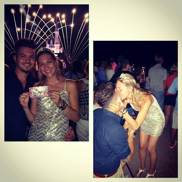I just recently got engaged and it was definitely a cute one so I thought I would enter. My boyfriend of two years decided that he would come on a family vacation with me and my whole family to Disney world. He held on to the ring in his pocket every day because he didn't want to leave it in a hotel, but had to grasp his pocket every time we went on a roller coaster! Finally on the night we went to magic kingdom, during the firework show, he gave me one of these blank love coupons I had given to him two years ago for him to use for whatever wishes he wanted. Inside this blank coupon was a will you marry me and as I turned around he was on one knee asking me to marry him. It was absolutely romantic and I was very surprised. The picture with my tears of joy and the amazing fireworks behind us says it all. |