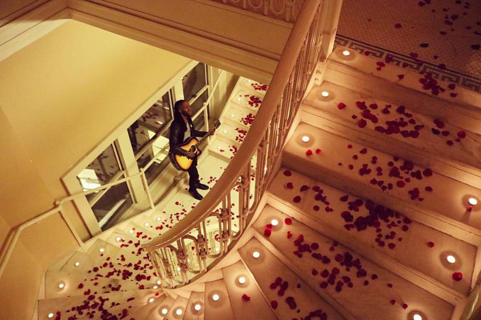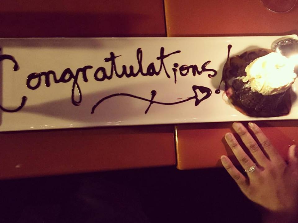 A few minutes later, up walks Jarami, in a suit & tie with a single rose. I said, "What are you doing here??", knowing exactly what was about to happen. I was in shock, but nerves took over as I saw he was nervous as well. He walked me to the elevator where we rode all the way up to the 9th floor. As we stepped out of the elevator and up the hallway, I saw that he had set up an entire double spiral staircase with red rose petals and candles lined on each stair. There, on the landing was our friend, Josh, who was playing a guitar and singing soft melodies and at the top of the stairs was another friend recording and taking photos of us. As he walked me up the stairwell, we got to the top and there was a circle of candles in which he had me stand. He then poured out his heart to me about our love and how it's from over the past two and a half years and got down on one knee! After he proposed, we were able to have a quick photoshoot, cut it up with our friends and then we headed out to a nice sushi dinner not too far from the hotel. There, they had a private table set up for us where we talked the whole night about the weeks leading up to the proposal. Our waiter brought out a dessert that had "Congratulations!" written on it, which literally ended our night on the sweetest note! I couldn't have imagined a better proposal and I'm so grateful for the love of my life! |