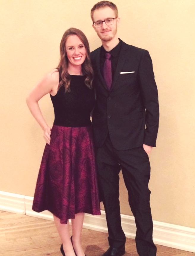 Christopher and I first met in high school. I thought he was really cute, but then I met his girlfriend. We shared an English class together and he wrote a short story on penguins that I voted for in the short story contest we had. I won. In Grade 12 he and his gf had a locker beside me. She always blocked me from getting into mine, so Christopher would come to my rescue sometimes and make her move so I wasn't late for class. Later that year they broke up and his friends started hanging out with my friends and he would offer to walk or drive me home to make sure I got home safe. I only lived a few streets away so I ducked out a few times on him because I didn't want him to go to the trouble. He eventually convinced me to go out with him after a lot of persistence. Our first date was a two-minute drive to Tim Hortons and I probably said five words to him the entire time because I was so nervous. After he dropped me off at home I messaged him saying I wish I had stayed with him longer. After that we got together more and on New Year's Eve of 2010 I asked him to be my boyfriend. He said yes.