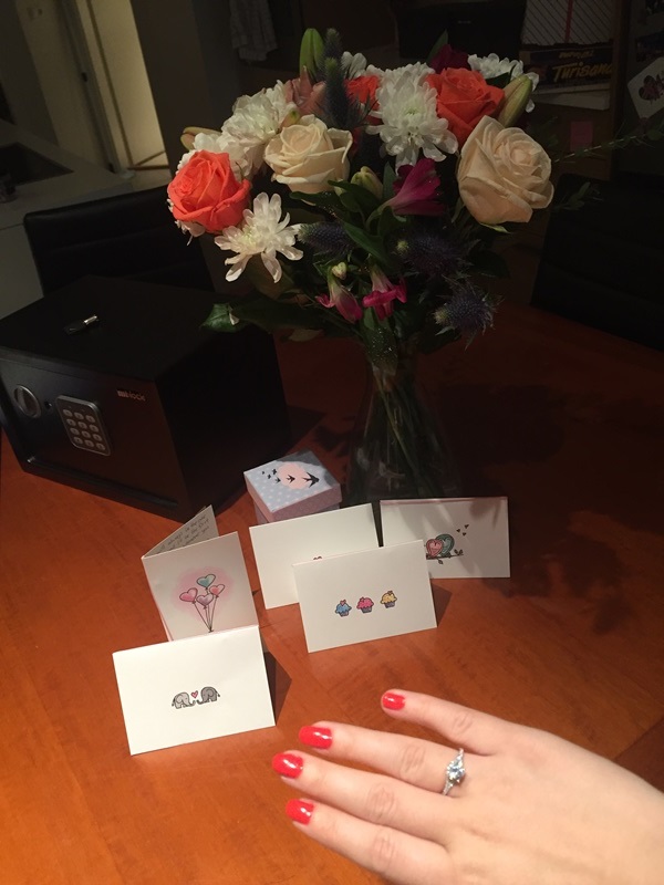 We are an unexpected match since we come from opposite ends of the world, me from Iceland and him from Australia, but we are the perfect fit for each other and share a common love for the world. Exactly 3 years after our first date, C woke me up with a cheeky smile and a huge present, which turned out to be a very heavy safe that was locked with a number combination. He then handed me a beautiful card, wishing me a happy anniversary and explained that I would be receiving clues throughout the day regarding how to open the safe. To top it off, I was not allowed to let the safe out of my sight so I dragged the safe with me to work, creating a lot of excitement with my colleagues (and basically everyone that walked past me that day). The first clue arrived after lunch, a beautiful bouquet of flowers delivered to my desk along with a card that had the number "1" tied to it. The card talked about how I would always be his number 1, his 1 priority and the only 1 for him. (The card also included some nerdy mathematical facts about the number 1 which I loved - we're both Engineers so we like to nerd out together). The second clue arrived shortly after I finished work. C took me (and the safe) to a wine bar and as the waiter was bringing me an appetizer plate, he very smoothly pulled out a little card from beneath the plate. That card had the number "6" tied to it and C described how he had rolled a 6 when he met me, how we moved in together after only 6 months and of course - how mathematically 6 is the perfect number! ? At that point I started suspecting there wasn't just a normal anniversary present in the safe, and I couldn't wait for more clues. We walked down to a nearby restaurant that we both love and sat down for a lovely meal (and of course, always carrying the safe). As the waiter was bringing us some macaroons for dessert, I noticed another card under the macaroons. That card had the number "9" tied to it and reading it brought me to tears - C talked about how it would take 9 months for us to create our own little family and how he couldn't wait to experience that with me. Hand in hand, we left the restaurant and I could tell that this adventure was about to reach its peak. We walked past a cute little skating rink which was all lit up with Christmas lights. C casually asked if we should go skating, so we rented some skates and skated around in our fancy outfits (and with our safe). As C is not the best skater I know (seriously, it's like Bambi learning how to walk), he took a break after a few circles and sat down in the middle of the rink. I skated towards him and as I sat down next to him, I noticed another card on the bench - my favorite of them all. That card had the number "0" attached to it and explained how C was nothing without me and how he had 0 doubts about us being together. 0 was how long he wanted to wait before continuing our lives together and this was the final clue to his heart. It took me a moment to realize that I could finally open the safe and I guess I knew there was a big moment to follow. With shaky hands and my heart beating out of my chest, I punched in these four numbers 1-6-9-0 (in the order I had received them). But the safe wouldn't open! C smiled at me and told me he couldn't have made it that easy. He said that with me being the math and board game nerd that I am - I would have to work just a little bit harder to figure out the combination. I nearly screamed and I simply couldn't think straight at that point - I just wanted to open the safe! C told me to think about how long we had been together, and then it hit me - this was a math puzzle! 3 years together is 365 days times 3 plus 1 (2016 was a leap year) equals 1096. I punched in those numbers and a beautiful pink box containing my ring appeared to me, C did a little speech (which is all a big blur to me) and went down on one knee - on his ice skates! I said YES but couldn't stop worrying about him falling over on his skates! Everyone on the skating rink came running to us, applauding and congratulating us. We took a moment to take it all in and then happily walked over to the bar on the next corner for an engagement toast. The exact same bar where we first met 3 years ago <3 |