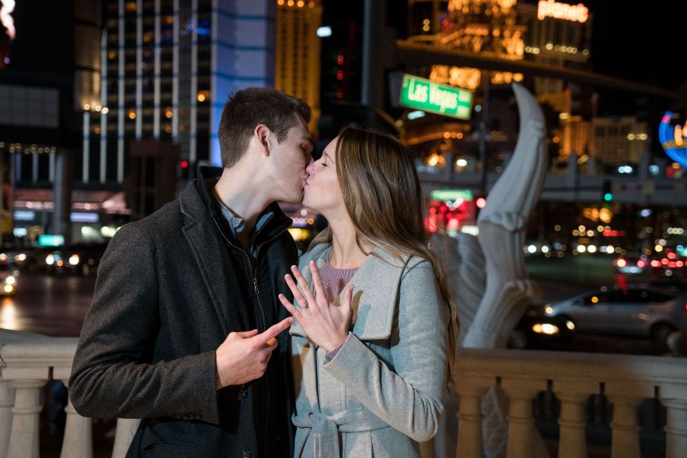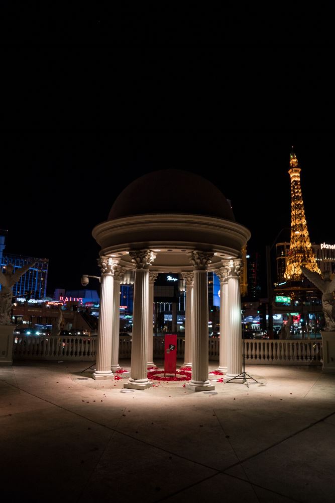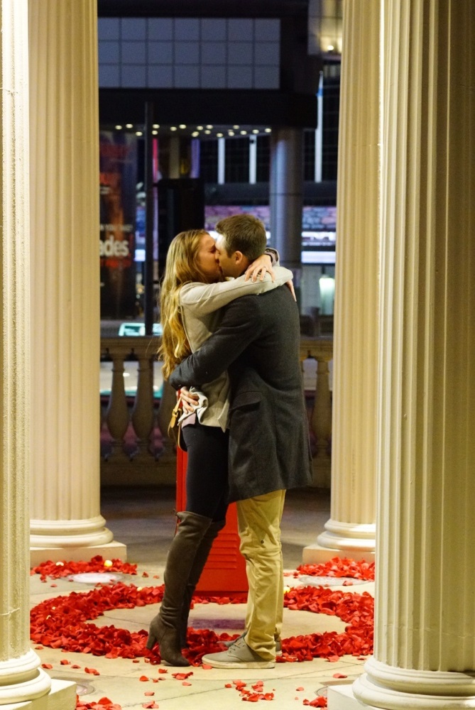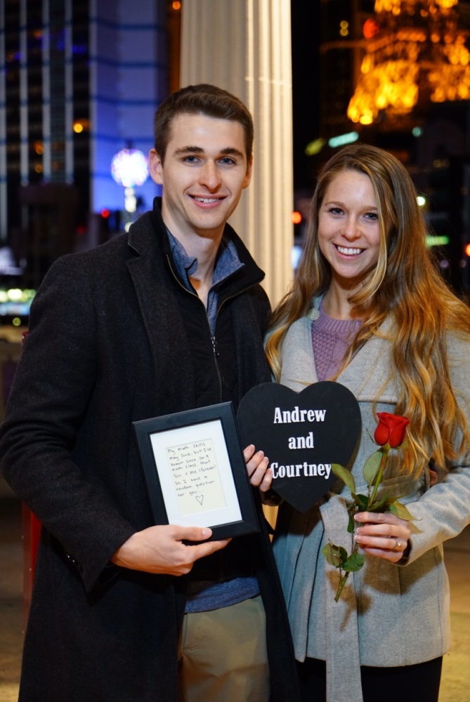 January 1st, 2017 we got engaged. We were in Las Vegas on vacation with his family. Every night of the trip we had all gone out for dinner together, except for this one night because "his family had a late lunch." So we had planned to meet them outside of Caesars Palace for a show. However when we turned the corner what I saw made me instantly break into tears. Underneath a beautiful gazebo I saw roses and candles circling a red locker (because we are high school sweethearts) with our names on it. I opened the locker to find more roses and a note saying "My math skills may suck, but I've known since grade 9 math class that You + Me = Forever. So, I have a random question to ask you..." (which is how he asked me to be his girlfriend) And when I turned around he was on one knee with a beautiful ring in hand. He had had this all planned out for months. Hiring a professional photographer and planners to get the locker set up. I could not dream of a more perfect proposal to a more perfect man. |