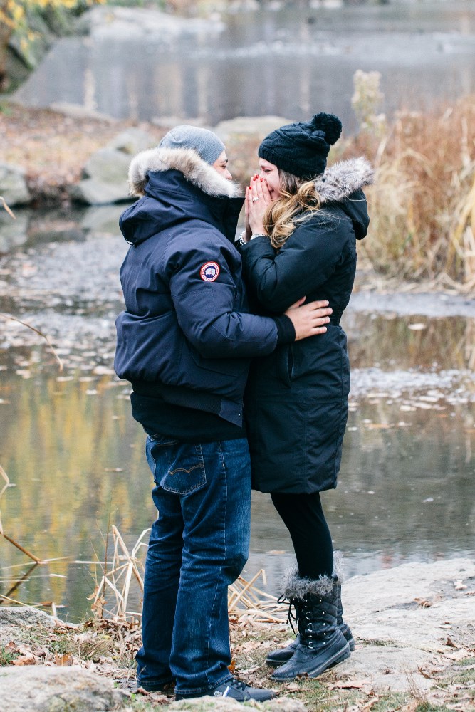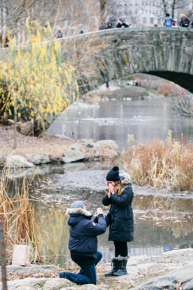 But back to the engagement story... Roger and I took a trip in December 2015 to New York City right before Christmas. I had always wanted to see the beautiful holiday lights and sounds that we all know too well from movies. From watching the Rockettes, to seeing the Rockefeller tree, it was a trip that I've always wanted to do. While we were in NYC, Roger planned a day to spend in Central Park, walking around and just enjoying the magic of NYC at christmas time. We had stopped to take a break from walking, and he had suggested to go visit a bridge where we had taken pictures together on a previous trip in 2011. I agreed, and we started making our way over there. Before we walked onto the bridge, I asked Roger if we could stop in front of the bridge to take a selfie together. He said sure, so we posed for a picture. After I took our selfie, he turned to me and said the most beautiful, heart warming speech. He then got down on one knee, and in front of that beautiful bridge, he proposed to me. Of course, I said YES!! A crowd had formed around us and onto the bridge, and many onlookers began to cheer and congratulate us. It was by far, the sweetest and greatest moment of my life. As I was crying (hysterically, I might add) he turned to me and said "Do you see that lady over there?" and pointed to a woman behind us. I said "yes...what about her?" He then said "She has been taking our photos and we now have a 30 minute photoshoot with her!" I was shocked! It was so beautiful. I now have beautiful photos to remember not only the moment we got engaged, but also the excitement afterward that the photographer managed to capture so beautifully. I have attached a few of the photos from our engagement for you to enjoy. I hope you enjoyed reading my proposal story. It is one I am so honoured to tell. Roger is the love of my life and I am so excited to marry him. |