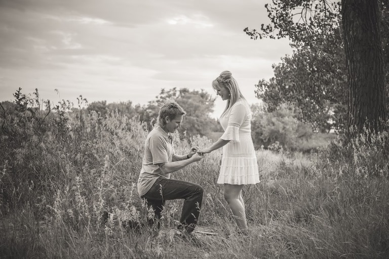 My Fiance Josh and I got engaged June 30, 2016 while I was working away from home for 7 months. I came home on our 4 year dating anniversary and he took me on a date like we do every year. He had a whole day planned out which is SO rare, everything with this guy is a "play it by ear" day. I on the other hand have to have everything planned, so this was such a pleasant surprise especially since I had no idea what we were going to do until we got there. First we went for lunch and then went mini-golfing at a new place that opened up in Medicine Hat. It was SO much fun!!! After golfing we went for dinner at the first place he took me on a date "the Cheesecake Cafe" and our food was absolutely perfect! I play women's fastball so he knows baseball is a big part of my life, so he had planned to take me to a ballgame after dinner but there was a rain delay. So he started driving to a park where we also went on our first date in case the rain cleared up we could go for a walk. Well it did so off we went for about 15 minutes until we came across this beautiful little rock beach as the lake was low, so we went to watch the sunset. As I was enjoying the view it of coarse started raining again so as I turned to run back up the hill to the vehicle/shelter, Josh was down on his knee asking me if I would spend the rest of my life with him. I of coarse said YES! Sunset rain proposal??? Super romantic! Anyways once we left he looked over at me and told me he even checked and our same date fell on a Saturday in two years, so we could get married on our 6 years of being together. When we decided to do engagement photos he wasn't overly thriller lol. We ended up watching the movie Mastermind, and decided to take some engagement photos in the same awkward and funny fashion as they did. It was SO SO SO much fun and they turned out even better than we hoped ?? now to get bridesmaid dresses so hoping to win them because, well.. Who doesn't want to win lol. Thanks for taking the time to read my proposal and look at our engagement photos!! | ||||||||