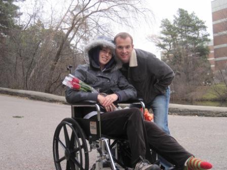 Those who know me well, know just how lucky I am. I mean I have a knack for catching that certain virus or wounding myself in some of the most absurd ways. Well this truth still stands true especially in the month of November. Early in the month I was lucky to experience a rather statistically uncommon injury for my age let alone my sex. During a swimming photo shoot for my online bio for work , I somehow managed to rip open an inguinal hernia on my left side. Sounds painful, but really more of a drag than anything. An inguinal hernia meant no more exercising and no more lifting anything over 10 lbs. Poor Tucker was devastated! Luckily, I was not to be permanently cursed with this protrusion. My surgery date was November 26th. As anyone awaiting surgery I was ecstatic. So ecstatic with the one injury, I just had to have another. I'm sure most of you realize "bad things come in threes" or "when it rains it pours". I think that's the mantra for the female members of my family. We are blessed so often with such unfathomable circumstances that we really ought to write a book. I'm serious, my mom's writing a book. So I fell. But not just any fall. As as I have mentioned before, have some godly gift of being in the wrong place, at the wrong time, surrounded by the wrong people. Wrong people, as in a group of rude men decidedly in a real need for beer. So badly did they need their after shift fix that they just had to rush past me in the LCBO causing me to step backwards. Of course when I stepped there was something lurking behind me just waiting to accentuate my fall. Just a couple of neglected boxes strewn all over the walkway. And of course I tripped and landed wrong. A distinctive Tessa move. An awkward landing resulting in a cracking sound and an elegant limp. Needless to say the hospital visit definitely dampened our plans with Michelle and James that night in Barrie. So ya .... boo hoo. So I'm hurt whatever. It was just the combo of having my leg in a cast and my surgery that put the icing on the cake. 5 days stuck in a bed in a hospital in Toronto for patients a good 20, 30 years my senior. Trust me I didn't feel out of place or alone at all. I love a good game of bridge. Well to be honest to say I wasn't a happy camper is an understatement. But on Shouldices' behalf I will commend them on their amply supply of pain killers and sleeping pills. Upon my surprisingly uneventful arrival at Shouldice Hospital ... No car accident. No problem getting admitted. I had no idea Nathan had planned to stay the weekend in Toronto. Not a clue. Being the sweetie that he is I should have guessed it. Nathan blessed me with ample visits always bearing flowers. He even snuck in during non-visitation hours. He was very adamant I get outside. On the last full day of my stay, Nathan took me out for a walk .... er I mean wheeled me outside in my wheelchair . He took me to a quaint walking path beside a river. Needless to say my chair isn't exactly a 4x4 but he made he made it work. We stopped at a bench so Nathan could sit. As I might remind you I was already sitting. Nathan brought 3 red roses. The first he said represented our past. The second our present (which has been a little tumultuous given the normal frustrations that accompany injured parties). The third rose he said represented our future. Attached to this rose was my gorgeous engagement ring. Now I'm pretty blind, so Nathan had to spell it out for me by getting down on one knee and proposing .... "Tessa will you marry me". I'm pretty sure I cried before saying yes. And for the record I did say yes. Nathan and I are now planning our fall wedding on Oct. 22, 2011. I am still on crutches... awaiting to see a surgeon. |