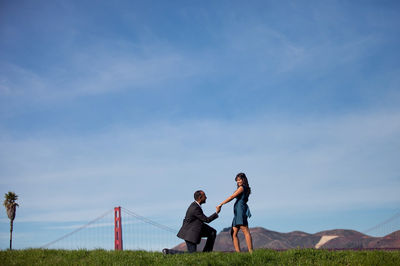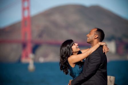 I (Hinal) met Nirav on eHarmony. We got engaged in San Francisco in November. On the way to Napa Valley, we stopped off at Crissy Fields to check out the view of the GG Bridge. He sat me down on a bench, gave me a photo scrapbook he had made with our favourite memories, played my favourite bollywood song Tere Bina on his iPhone and proposed with a rose and THE ring. I had no idea. I cried, of course. He had been talking to my best friend the entire time and got me my perfect ring. The best surprise was that he had hired a photographer (Orange Photography) in San Francisco; she had been sitting at the bench across from me, snapping away 40 pictures of the entire surprise... plus we had a 90 minute photo shoot with her afterwards. I can't remember a day where I've smiled and laughed so much and felt so much in love. We will remember San Francisco and Napa Valley with so many fond memories of a wonderful weekend.