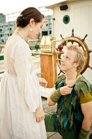 Chris and I started dating while he was performing the role of Peter Pan at a theatre in Philadelphia. Little did he know I had been obsessed with Peter Pan since I was a kid- I had the wendy nightgown, I wore out the VHS tapes, I had dreams of Peter Pan taking me on dates- the whole deal. Chris was out of town for work when my friend suggested going to the docks for a food fest. Upon approaching the boats, we saw a man dressed in a pirate costume. Kristen said, "Well, of all people, we definitely have to meet that guy" I laughed and approached the boat. As the man turned his head I realized it was an out of town child-hood friend of Chris' ! "Tony, what are you doing here?!" I shouted, half knowing. Tony handed me a beautiful antique "Wendy-like" nightgown and said "You're going to need this. Come on, Wendy." Shocked, my friends had to help me get the dress on and walk me on the boat. Coming around a corner I saw 10 close friends, including my best friend from high school (who I hadn't seen in months) and my mom ( an 8 hour drive!). After hugging the out-of-towners, they pushed me further onto the boat and said, "No! Go to him!" I turned and saw Chris in the original Peter Pan costume I had seen him in a year before in the performance. I was totally astounded. He got down on one knee and said "Katelyn Moriah Angela Darling, will you marry me?" Of course I said yes followed by champagne and fireworks from the food fest I thought I was attending. All in all, the best night I could never even imagine :) |