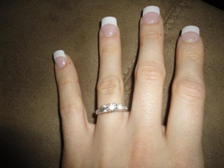 My fiance Craig and I have been together for almost 3 amazing years by the time of his proposal. This past Christmas we chose to go on a shopping spree to buy what ever we wanted instead of the traditional gift giving. When Christmas morning arrived we woke up relaxed and excited our 6 month old puppy Bentley. Talking to him like a toddler I grabbed his very own stocking and assisted to sneak his head in and grab his goodies. At the same time Craig was excited with Bentley, nothing out of the ordinary. Suddenly he says, "We'll it's time to look for your gift, it is in, on or around the Christmas tree." I was confused at the idea of this as we had planned no gift giving and not to mention that I had not noticed anything around the tree. Craig convinced me to search otherwise. I walked over and glanced at the window ledge behind the tree...nothing there. As there was nothing hanging or sticking in between branches of the tree either. I became frustrated, grabbed and ornam ent and said, "All I see are these darn ornaments!" Still, i was clueless to the little rattling sound of the ornament, thinking it was just it's material hanging in the inside. This particular ornament was shaped like a bell and covered in different patterns of silver beads, thus the assumption of the rattling sound. Meanwhile, Craig is thinking something along the lines of, "Come on, seriously?" He asked me what was on the ornament. I still was oblivious to it that he grabbed the ornament from me, took off the ring hanging on the top of the ornament through the loop of string. MY EYES POPPED! Craig kneeled on one knee and lol I quote says, "Now, I have a question..... Will you marry me?" All I could says of course was 'yes,' but nothing immediately following as I was blown by his proposal. I always thought I would cry when this day came but the surprise took over! AND on final note, the ring had been hanging there for a few days! Oh and he decided to take the opportunity to propose after we decided no gifts for each other this year. Really had no idea:) So now our big day is to take place on September 22, 2012. One photo attached is the ornament with the ring laying right on top of it and they blended realllllly well that I couldn't tell. |