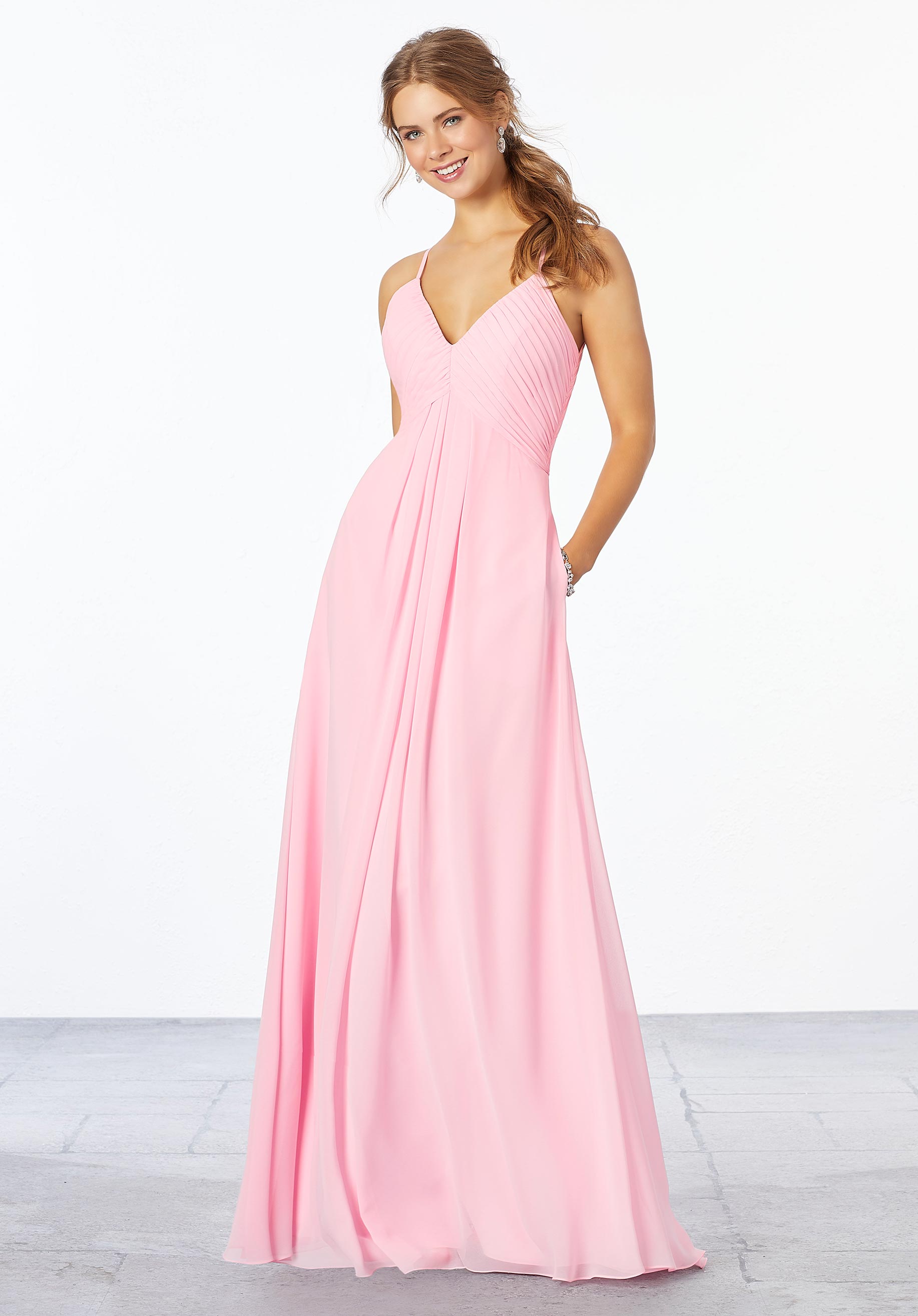 Mori Lee Bridesmaids Spring 2020 Collection: 21658 - Chiffon Bridesmaid Dress with Keyhole Back Gown