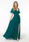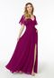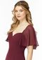 Flowing chiffon bridesmaid dress featuring a sweetheart neckline, flutter sleeves, and front slit. The back has a keyhole with a dainty tie detail. Shown in Bordeaux. View Chiffon swatch card for available colors.
