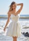 Classic mini dress has a sweetheart neckline with cowl detail on the boned bodice with a pleated satin skirt.