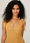 Chiffon bridesmaid dress with v-neckline, empire waist, tied straps, and keyhole back.