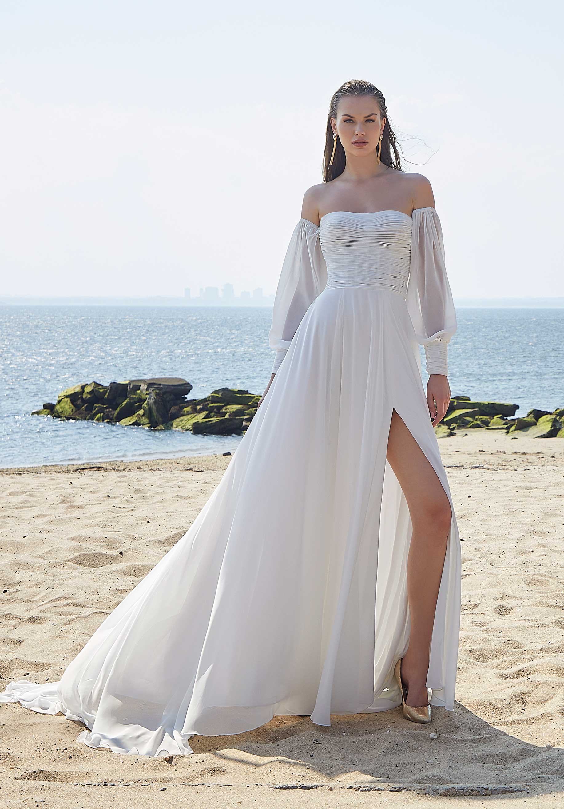Detachable Chiffon Bishop Sleeves (included), also sold separately as Style 11506.