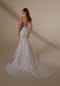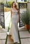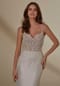 Alluring fit and flare has a sheer boned bodice designed with stunning crystal beaded embroidered lace meeting a sleek Larissa satin skirt.