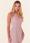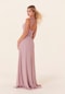 Boho bridesmaid dress has a high neckline with sheer, botanical detailing leading to an open strappy back.