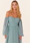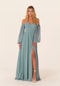 Effortless A-line bridesmaid dress has a sweetheart neckline and tied sash to define your figure with bishop sleeves that can be worn on or off the shoulder.