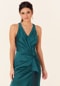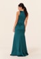 Detailed bridesmaid dress has a v-neckline on a surplice bodice with ruching and a textured skirt ruffle.