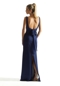 Sophisticated bridesmaid dress in luxe satin has a modified sweetheart neckline and gorgeous open back with a chiffon sash cinching in your figure and tieing into a delicate bow in back. The back skirt slit allows for more movement in the dress. Shown in Sapphire.