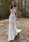 Sexy crepe and romantic lace combine to create our Phoebe designer wedding dress. The stunning fit and flare features a sheer boned bodice designed with pearl beaded, three-dimensional floral appliqués. The crepe skirt creates a striking contrast with its sleek look and we love the dreamy touch of the cut-away lace train. Shown in Ivory/Honey.