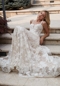 Our Preciosa designer wedding dress is full-on floral with frosted, allover floral embroidered net on a relaxed A-line silhouette. The sweetheart bodice has a sheer inset with accents of floral patterned beading for added dimension. Detachable floral beaded straps give you versatility in styling and the scalloped hemline is a dainty touch. Shown in Vintage Ivory.
