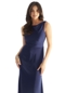 Elegant bridesmaid dress has a luminous look in luxe satin fabric on a slim A-line silhouette that skims the body. The bateau neckline has a modest look with a romantic draped cowl back for some textural interest. Shown in Navy.