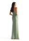 Relaxed bridesmaid dress is effortless in chiffon with a chic straight strapless neckline and wrap-style skirt. The sheath silhouette elegantly glides over the body for a simply stylish look. Shown in Moss.