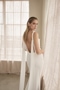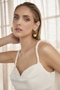 Be your own muse in Le Blanc's silky cowl neck dress crafted from satin and lining to hug every curve. Softly falling to the floor into a dramatic 68-inch train, this fluttering, fit-and-flare silhouette features twisted tank straps that dive over the shoulder and transform into long satin ribbons. Dress this look up for a city wedding with gold earrings and pumps, or down for a beach wedding with pearls and shell embellished sandals. Cyrus's most stunning angle is when the bride looks over her shoulder highlighting her low-cut cowl back, fitted hips, and breezy details all in one stunning moment.