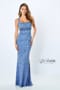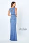 This sheath gown has a beautiful square neckline and an empire waistline. It is lined in jersey with beaded tulle overtop. Shawl and separate three-quarter sleeves included.