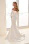 Crafted from ultra-flattering matte jersey, this chic fit and flare bridal gown is guaranteed to make you swoon. Featuring a stylish portrait neckline and elegant three-quarter sleeves, this timeless bridal style is perfect for the bride who wants to look sophisticated and graceful on her special day. Matching shawl included.