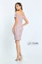 This mesmerizing beaded tulle sheath dress has a bateau neckline and off-the-shoulder sleeves. Shawl included.