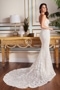 Create your own fairytale with this breathtaking fit and flare gown. This style is ultra-feminine and features a flattering sweetheart neckline, a softly structured lace bodice, and charming separate long sleeves. A show-stopping beaded chapel train adds a dazzling finale to this sparkling bridal style.