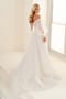 This style embodies the essence of bridal romance, with a strapless sweetheart bodice that features a dazzling array of sequin lace appliqués. The magnificent tulle skirt will have you glowing all through the night. To add a whimsical touch, the dress comes with long off-the-shoulder bishop sleeves complete with a cuff made of matching sparkle lace.
