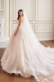 Say "I do" in this feminine ball gown exquisitely crafted from dreamy tulle and organza. The elegant straight neckline gracefully accentuates the decolletage, while the romantic three-dimensional floral lace applique adds a touch of whimsy. A breathtaking full skirt and a spectacular cathedral train complete this breathtaking bridal style. A separate full bodice liner and separate straps are included for added modesty and versatility. Matching veil MT5121VEIL sold separately.