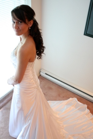 I wanted to send you some photos from the wedding 3 weeks ago. We had a fun, relaxed day and I wasn't the only one that LOVED my dress, I received many compliments. My mother mentioned that there were a few ladies who just loved, loved it. Thank you for your help with getting the dress sooner then I expected and you promised me, what a stress relief to have it in hand. And the fabric that you provided that matched my dress made a beautiful dress for my flower girl.