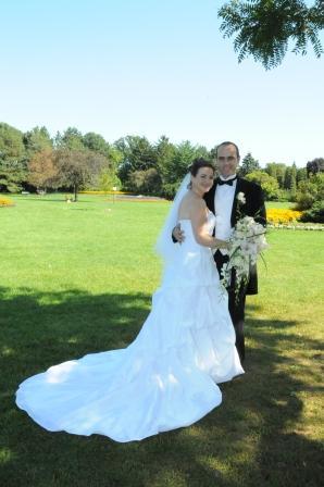 My husband and I would like to say a big thank you for all your assistance, in helping me get my beautiful wedding dress in time for our wedding which was on the August 20, 2005. I know it was quite a task, as I ordered the dress only about 7 weeks to the wedding, but you were very patient, pleasant and helpful. We really appreciate it! We've attached a photo of us in our special day.