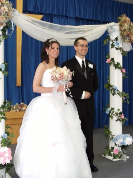 My husband and I would like to say a big thank you for all your assistance, in helping me get my beautiful wedding dress in time for our wedding which was on the August 20, 2005. I know it was quite a task, as I ordered the dress only about 7 weeks to the wedding, but you were very patient, pleasant and helpful. We really appreciate it! We've attached a photo of us in our special day.