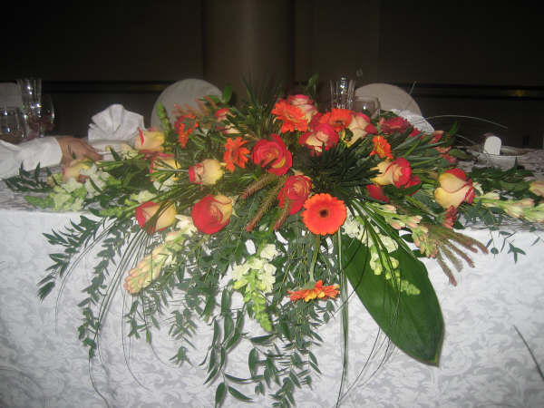 This low centerpiece for the head table contributes a tropical atmosphere in any wedding venue. Flowers used in this kind of centerpiece consist of roses, gerberas, and snap dragons. Different shapes of lush green leaves are equally distributed to act as backdrop and fillers to enhance the beauty of the flowers. All in all, this low centerpiece is an awesome sight to behold, without overshadowing the presence of the wedded couple and those seated on the table. There are choices of different flowers that you could choose from, so you can tailor fit this centerpiece to your personal motif.